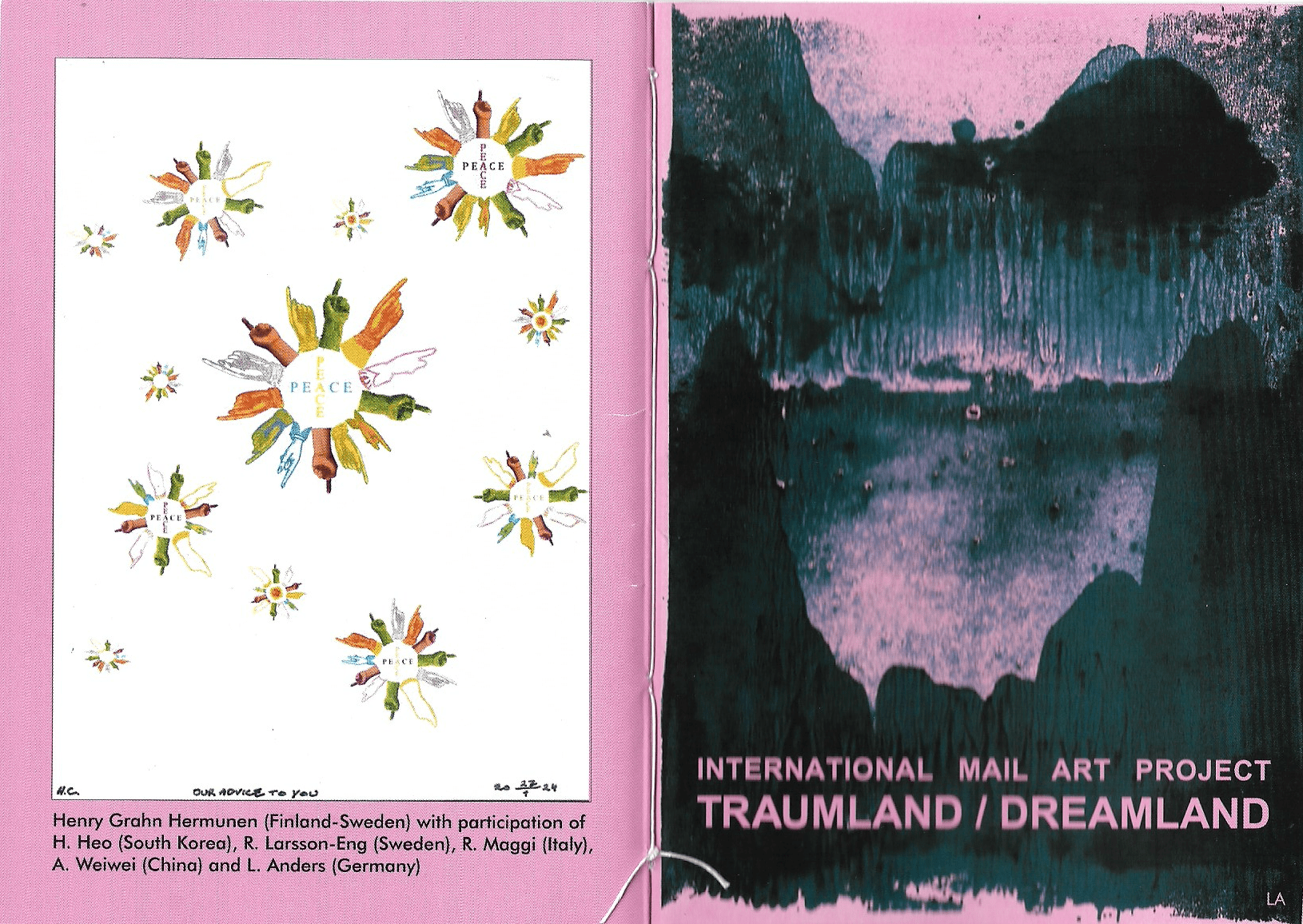 Lutz Anders hat über die Ausstellung hinaus Unglaubliches geleistet: Er hat aus den Einsendungen von 255 Teilnehmern aus 45 Ländern einen 48-seitigen Katalog erstellt und versendet. Mit dabei: drei Marken mit dem jeweiligen Beitrag.