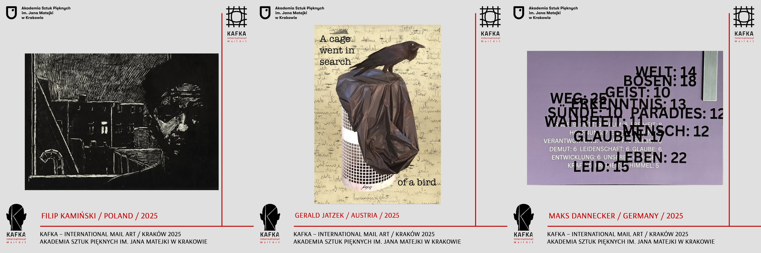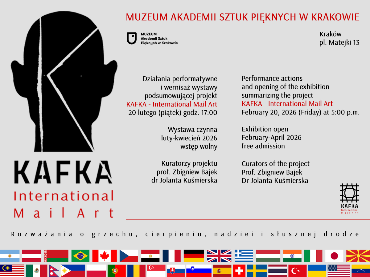 2024 marked the centenary of Franz Kafka’s death, and the Jan Matejko Academy of Fine Arts in Krakow was eager to find out how contemporary artists see the genius from Prague – who wanted his friend Max Brod to destroy all of his unpublished works. To this end, they launched a call for mail art based on Kafka’s collection of aphorisms “Meditations on Sin, Hope, Suffering and the True Path”, widely known in German as “Die Zürauer Aphorismen”.