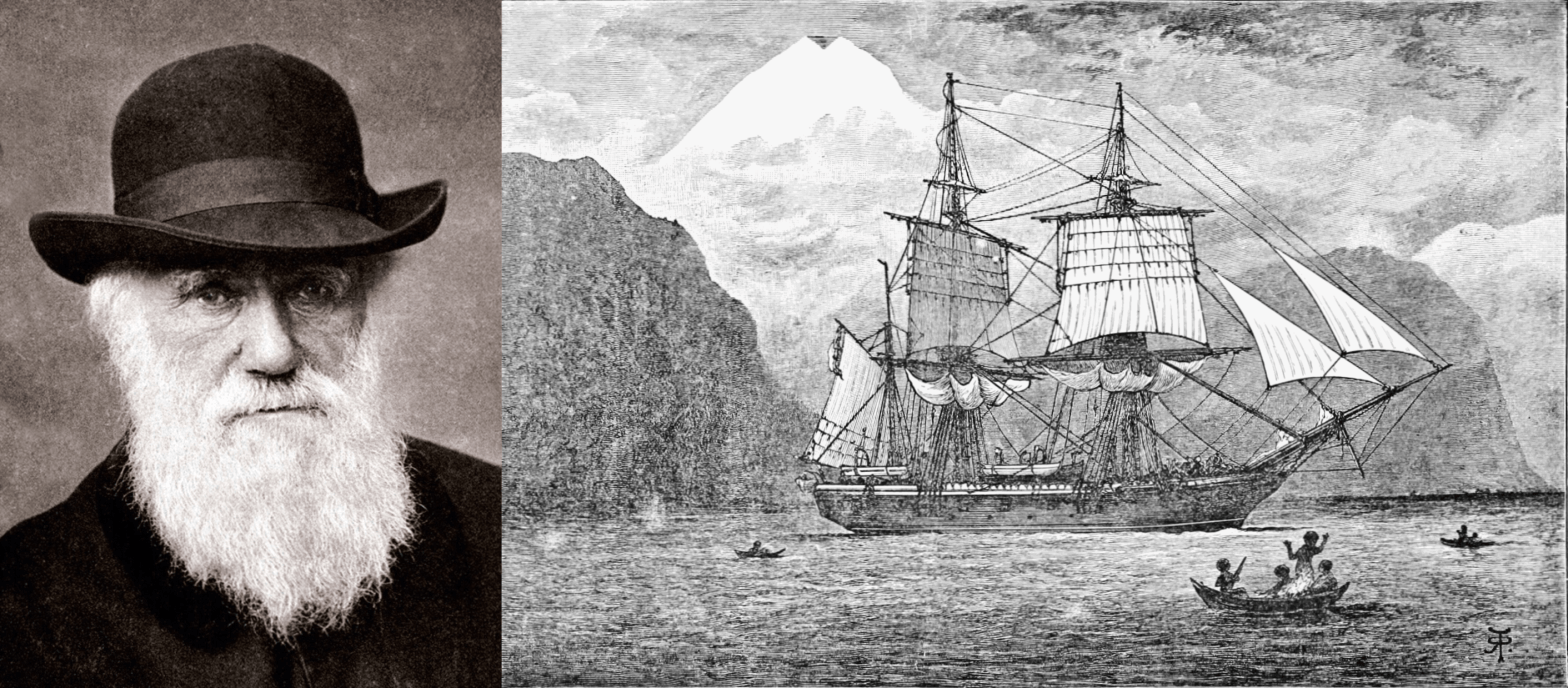 ■ Charles Darwin en 1881 y el HMS Beagle, a bordo del cual navegó durante casi cinco años (1831-1836).